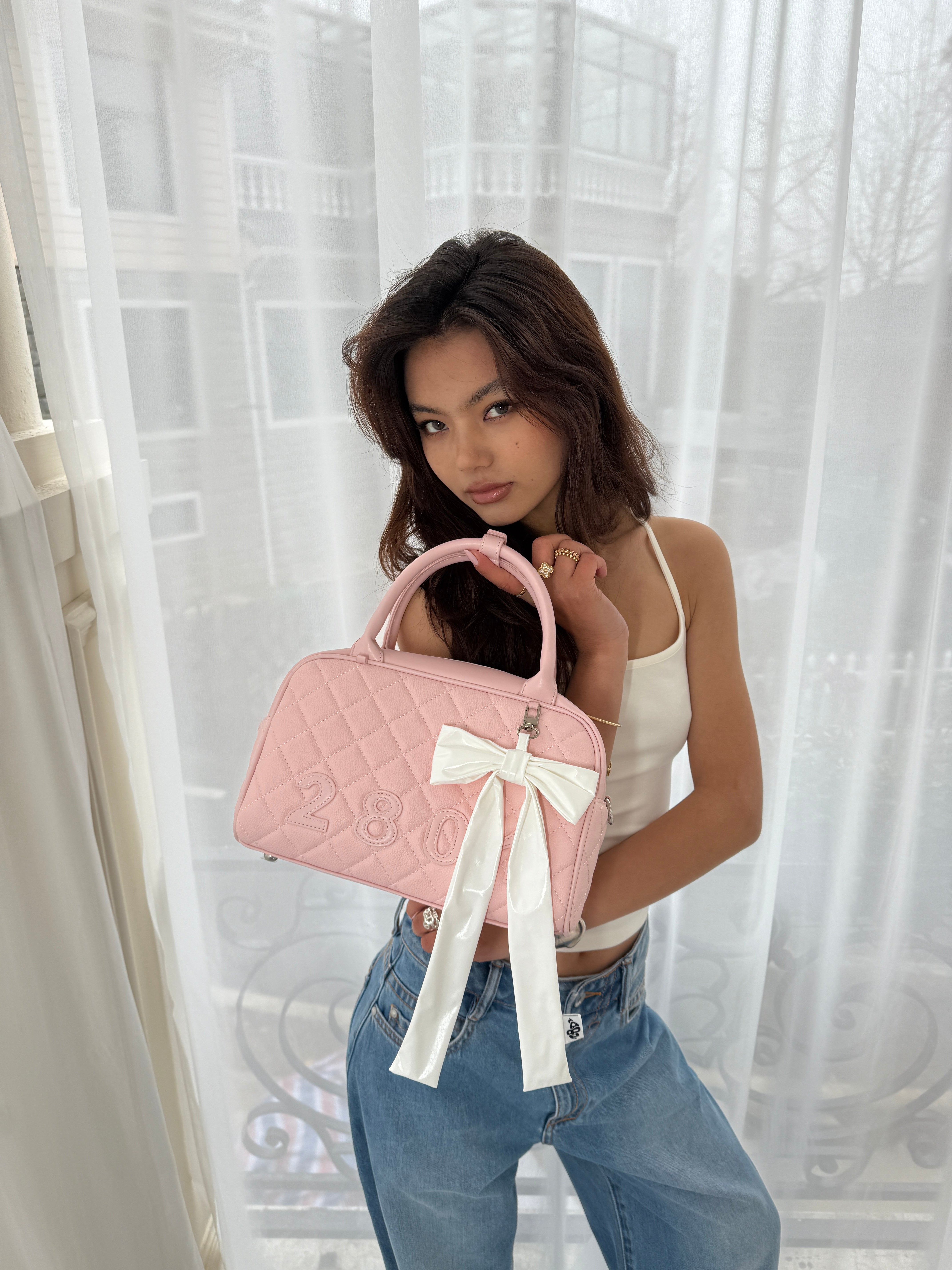 Quilted bowling bag with an embossed logo and a spacious, structured design. Lightweight and versatile.