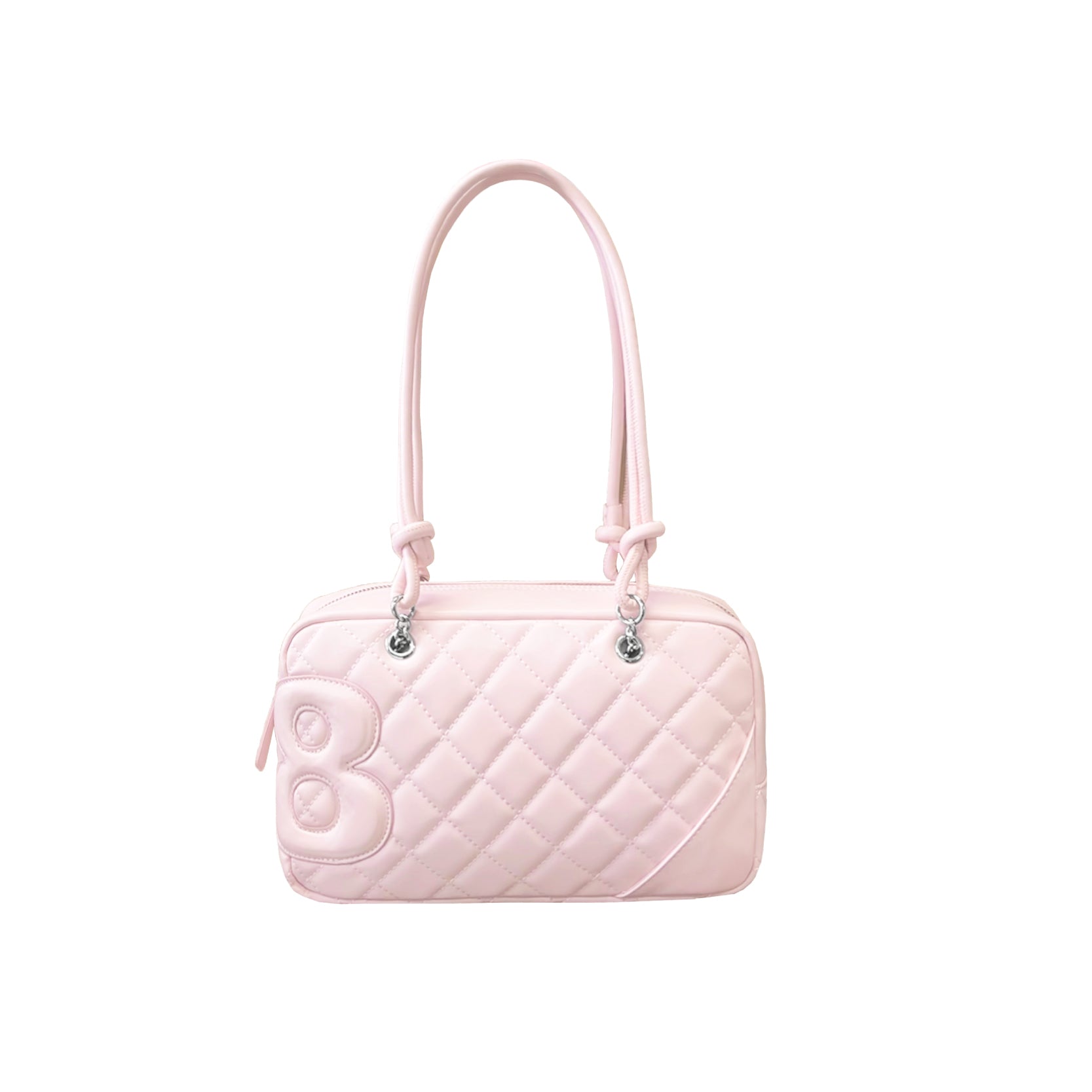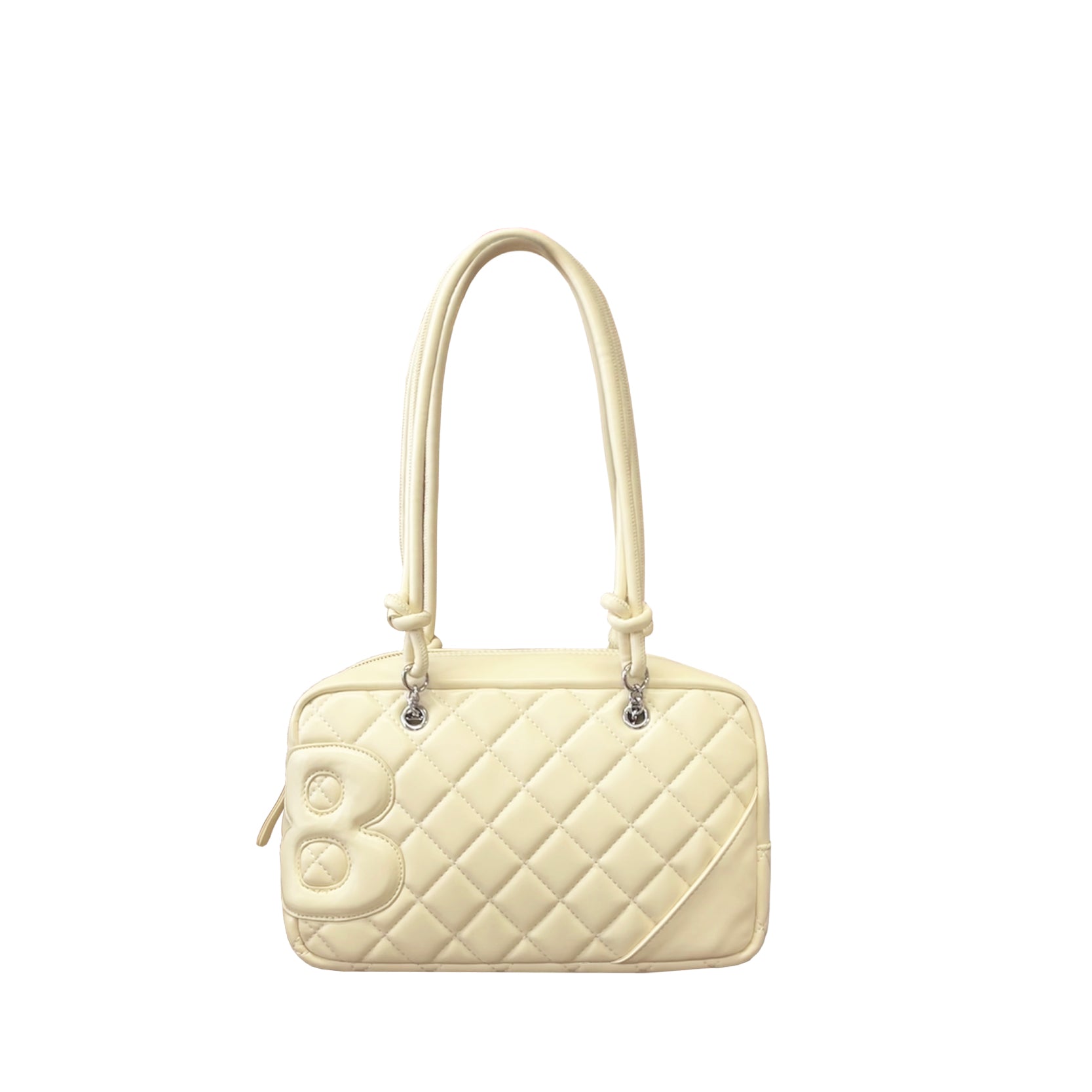 Quilted shoulder bag with embossed “8” logo. Soft pillow-like texture with a structured shape. Spacious interior with secure compartments. Comes with triple star bag charm.