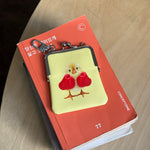 Kiss-lock coin purse with a detachable metal strap. Can be worn as a mini-purse or as a bag charm. Comes in two colors / prints: